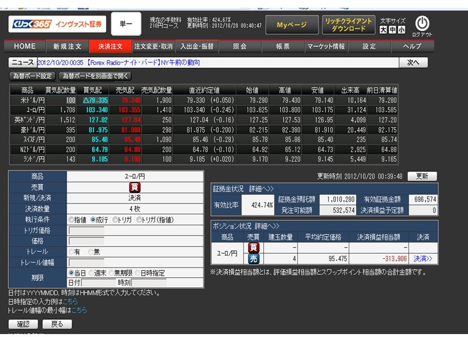 当初はドル/円を恐る恐る取引、若干プラスというところでユーロ/円に手を伸ばします。